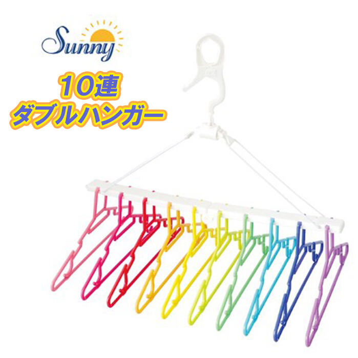 SUNNY RAINBOW フォルダブルハンガー 10連 サニー フック付き サニー おしゃれ 折り畳みハンガー 物干しハンガー 洗濯ハンガー かわいい ランドリー カラフル レインボー 洗濯用品 便利 グッズ アイテム 新生活 生活雑貨 コンパクト 収納 洗濯物 プレゼント ギフト